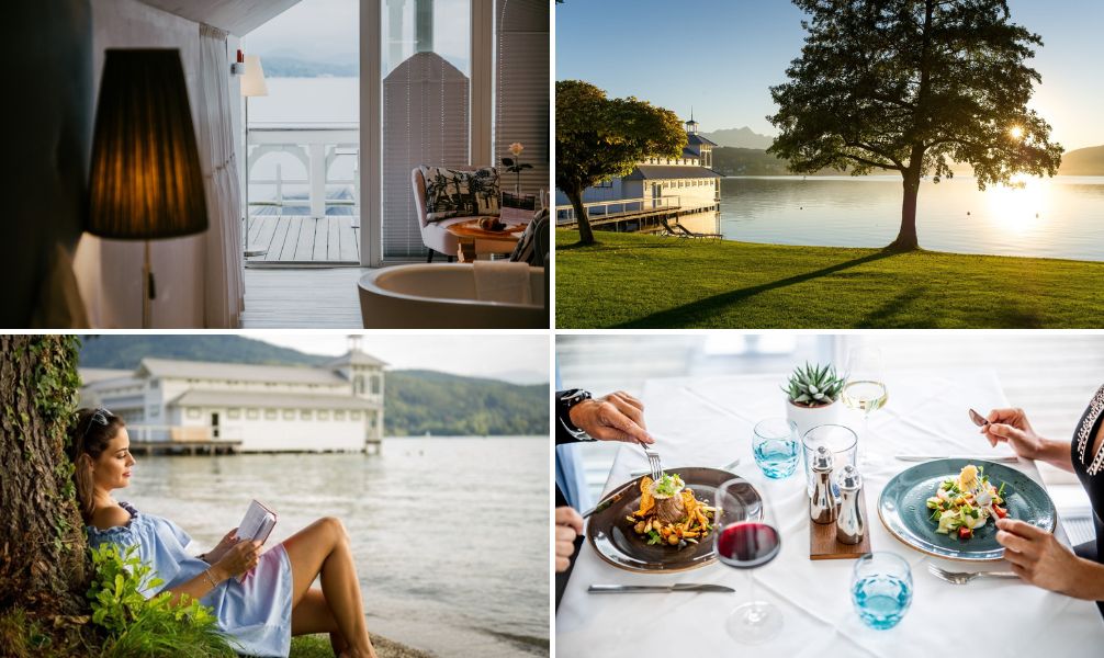 Ein 2.000 m² großer Wellness- und Spa-Bereich mit beheiztem Outdoorpool, sportärztliche Betreuung nach Wunsch und ein umfangreiches Fitness- und Freizeitangebot sorgen für ein absolutes Wohlfühlambiente. In den Saunen und Ruheräumen haben Gäste einen traumhaften Ausblick auf den Wörthersee. Wer auf der Suche nach etwas ganz Besonderem ist, sollte sich in der Sunset Suite einquartieren. Dies ist ein echter Geheimtipp für einen Romantikurlaub in Österreich. Für Genusserlebnisse sorgen die drei hauseigenen Restaurants und Bars.