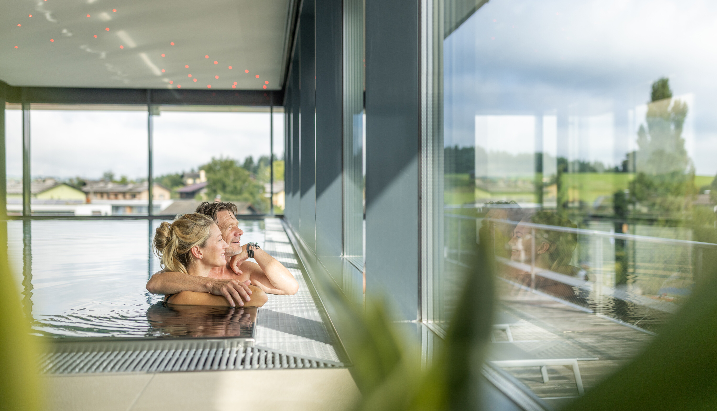 Direkt am Hotel führen der bekannte Römerradweg und der Innradweg vorbei. Möchtest du es ruhiger angehen, dann steht dir die größte Therme Österreichs, das Spa Resort Therme Geinberg, zur Verfügung. Die abwechslungsreiche Wellnesslandschaft mit 3.000 m² Wasserfläche, 5 Pools und 3 Wasserwelten ist bequem über einen Bademantelgang erreichbar. Genieße erholsame Momente im warmen Thermalwasser, in der einzigartigen Salzlagune oder entdecke mit deinem Schatz die Oriental World mit Hamam. Die Karibik-Lagune mit zahlreichen, mit Palmen dekorierten Wasserbecken lädt ebenfalls zum Entspannen ein. Eine große Auswahl an verschiedenen Wellness- und Beautyanwendungen rundet das Erholungsangebot ab und macht das Vitalhotel & SPA Resort Therme Geinberg zu einem idealen Romantikhotel für eine Auszeit zu zweit.