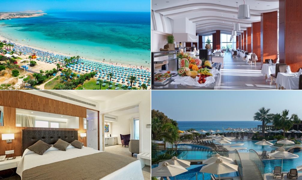 Das Sunrise Beach Hotel liegt direkt am wunderschönen Sandstrand von Protaras und bietet eine erstklassige Lage für alle, die das kristallklare Wasser und die malerische Küstenlandschaft Zyperns genießen möchten. Das moderne Hotel begeistert mit stilvoll eingerichteten Zimmern, kulinarischen Highlights und exzellentem Service. Besonders Familien und Paare finden hier ein Rundum-Sorglos-Paket mit viel Komfort und einer entspannten Urlaubsatmosphäre.