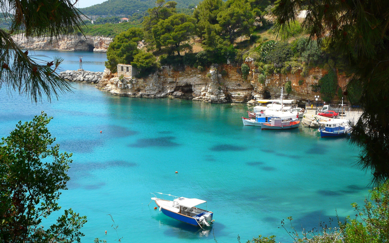 Knapp 4.000 Einwohner bevölkern die etwas mehr als 64 km² große Insel der Nördlichen Sporaden. Mit ihrem typisch griechischen Hauptort, ihren einsamen Badebuchten und abwechslungsreichen Wanderwegen hält die Insel alles für einen erholsamen Urlaub bereit.
