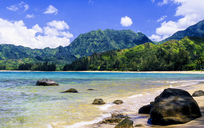Der Waimea Canyon ist aufgrund des gleichnamigen Flusses entstanden, der sich auf einer Länge von etwa 19 km in das Vulkangestein gegraben hat. Das dadurch entstandene Tal ist bis zu 900 m tief und kann von einigen Aussichtspunkten betrachtet werden. Auffällig hierbei ist zum einen die üppige Vegetation, die die Folge vieler Niederschläge ist. Das Regencape sollte somit bei einem Ausflug zu dem Waimea Canyon nicht fehlen. Außerdem werden die vielen Helikopter auffallen, die entlang der steilen Klippen fliegen und ein aufregendes Bild abgeben. Auf diesen Flügen kann man sich einen guten Gesamtüberblick über die Insel verschaffen, wobei dies aufgrund der kurzen Entfernungen zwischen den Sehenswürdigkeiten auch wunderbar mit dem Auto klappt. Viele der komfortablen Unterkünfte lassen sich an der Ostküste zwischen Princeville und Po'ipu finden.