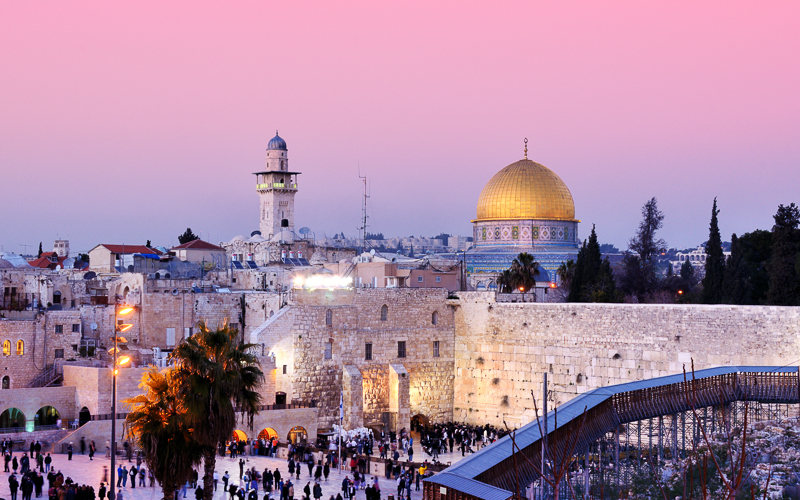 Zwischen Mittelmeer und dem Toten Meer gelegen, ist Jerusalem einer der bedeutendsten Orte für die drei monotheistischen Weltreligionen. Die historische Altstadt und deren Umgebung zeugen von der bewegten Geschichte Jerusalems seit der Zeit des ersten Tempels um das Jahr 1000 v. Chr.: Wichtige religiöse Stätte wie die Klagemauer, der Tempelberg mit der Al-Aqsa-Moschee und dem Felsendom sowie die berühmte Grabeskirche befinden sich hier.