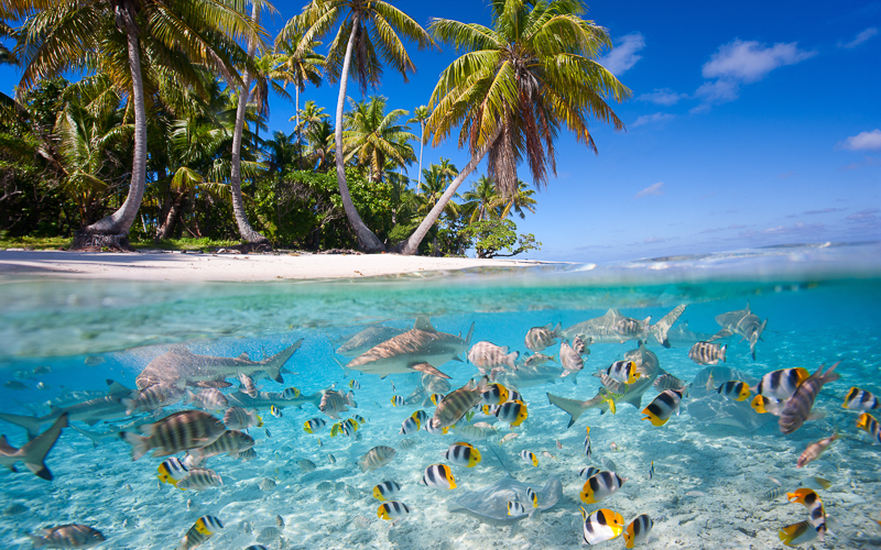 Die Malediven bestehen aus fast 2.000 kleinen Inseln, die von zahlreichen, unter Naturschutz stehenden Korallenriffen umgeben sind. Das erlaubt Tauchern und Schnorchlern einen unglaublichen Blick in die beinahe unberührte, bunte Unterwasserwelt. Im tropisch-warmen Wasser in den Atollen der Malediven leben Hunderte verschiedene Fischarten. Besonders beliebt und bekannt sind die vielen Rochenarten und Barrakudas. Daneben existieren noch viele kleinere Tiere wie Krebse, Schnecken, Anemonen und Krabben sowie farbenprächtige Korallen und Schwämme.