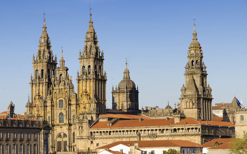 Die Hauptstadt der Autonomen Gemeinschaft Galicien ist Santiago de Compostela. Wegen der hier aufgefundenen Gebeine des Apostels Jakobus ist die Stadt ein sehr beliebter Wallfahrtsort. Die Altstadt gehört zum Weltkulturerbe und die wunderschöne Kathedrale von Santiago de Compostela zählt als die Grabeskirche des Apostels Jakobus. Das im Jahre 1077 errichtete Gotteshaus bietet im Inneren einen sehr sehenswerten Altar mit einem vergoldeten Baldachin und verschiedene Reliquien, darunter ein goldenes Kruzifix aus dem Jahre 874.