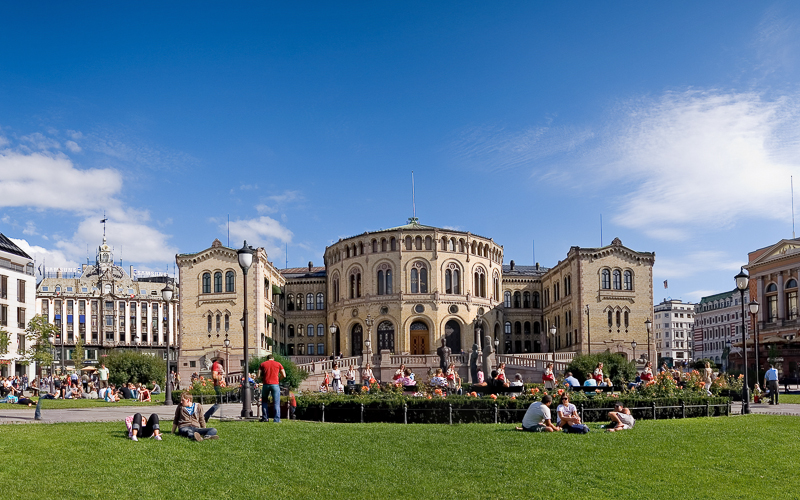 Oslo, die Hauptstadt des Landes, ist ein begehrtes Ziel für Städtereisen. Der Flughafen Gardermoen, wo die meisten Urlauber ankommen, liegt in 50 km Entfernung. Mit ungefähr 1,4 Millionen Einwohnern ist Oslo eine der kleinsten Hauptstädte Europas - dafür liegt es in einer wunderschönen Umgebung, zwischen zahlreichen Hügel und Fjorden. Eine der berühmtesten Sehenswürdigkeiten ist das königliche Schloss. Es wurde im klassizistischen Stil erbaut und ist Wohnsitz der norwegischen Königsfamilie. Das dreiflügelige Schloss befindet sich in Staatsbesitz und ist von einem 22 Hektar großen Park umgeben. Das monumentale Rathaus von Oslo ist ein Wahrzeichen der Stadt und der norwegischen Unabhängigkeit. Dort findet alljährlich die Verleihung des Friedensnobelpreises statt. Seit dem Jahr 2000 befindet sich an der Fassade ein Glockenspiel aus 49 Bronzeglocken unterschiedlicher Größe.