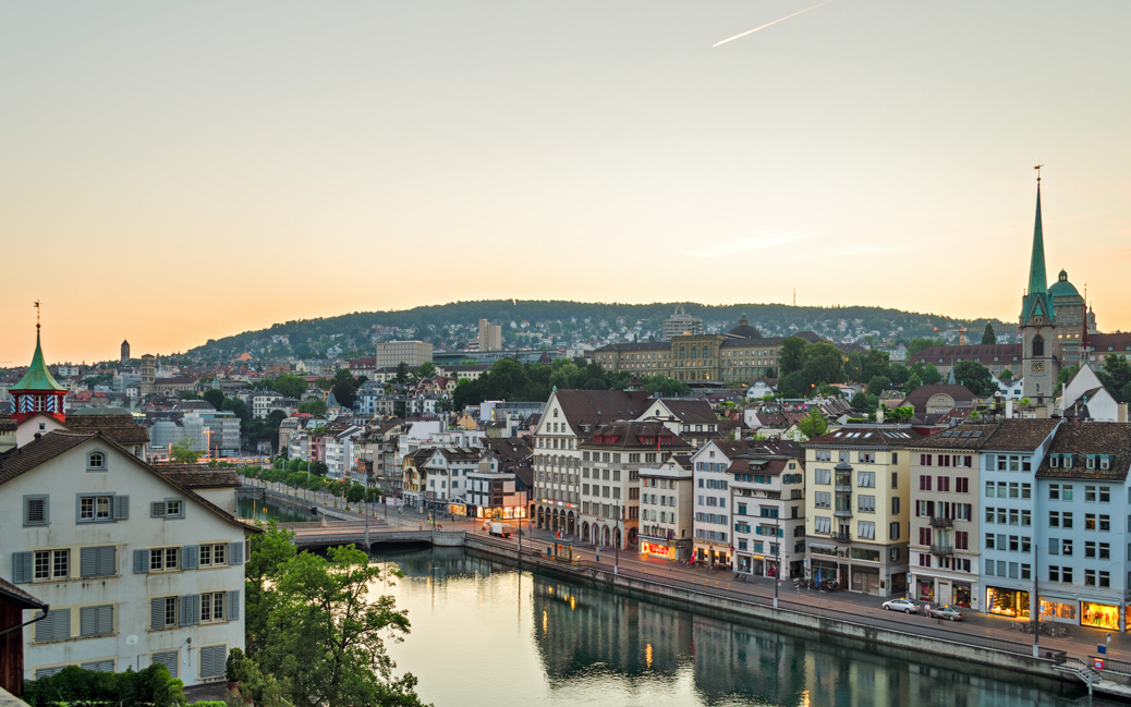 Die romantisch am Zürichsee zwischen den Höhen von Uetliberg und Zürichberg auf 408 Meter Höhe liegende Stadt lockt mit malerischer Umgebung. Eine Bergbahn führt auf den 869 Meter hohen Uetliberg, Zürichs Hausberg. Auf dem Gipfel thront ein Aussichtsturm, welcher atemberaubende Panoramablicke auf die Stadt, den See und mit etwas Glück bis zu den Alpen verspricht. Weite Waldgebiete und Grünanlagen entlang des Seeufers laden zu mußevollen Spaziergängen ein. Die Stadt selbst glänzt mit ausgezeichnet erhaltenen mittelalterlichen Gebäuden links und rechts der Limmat. Das bezaubernde Renaissance-Rathaus, mächtige romanische Großmünster, in dem die Reformation unter dem Theologen Huldrych Zwingli seinen Ausgang nahm, und die historischen Zunfthäuser am Limmatquai sind nur einige Höhepunkte Zürichs.